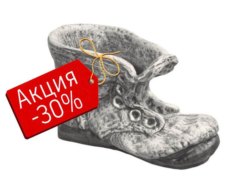 Один из цветочников с оригинальным дизайном, безусловно, является цветочник Башмак малый. Настоящий цветочник очаровательно смотрится и в качестве декоративного сувенира в Вашем дворе. Изготовлен из бетона высокой марки, что гарантирует высокую долговечность.